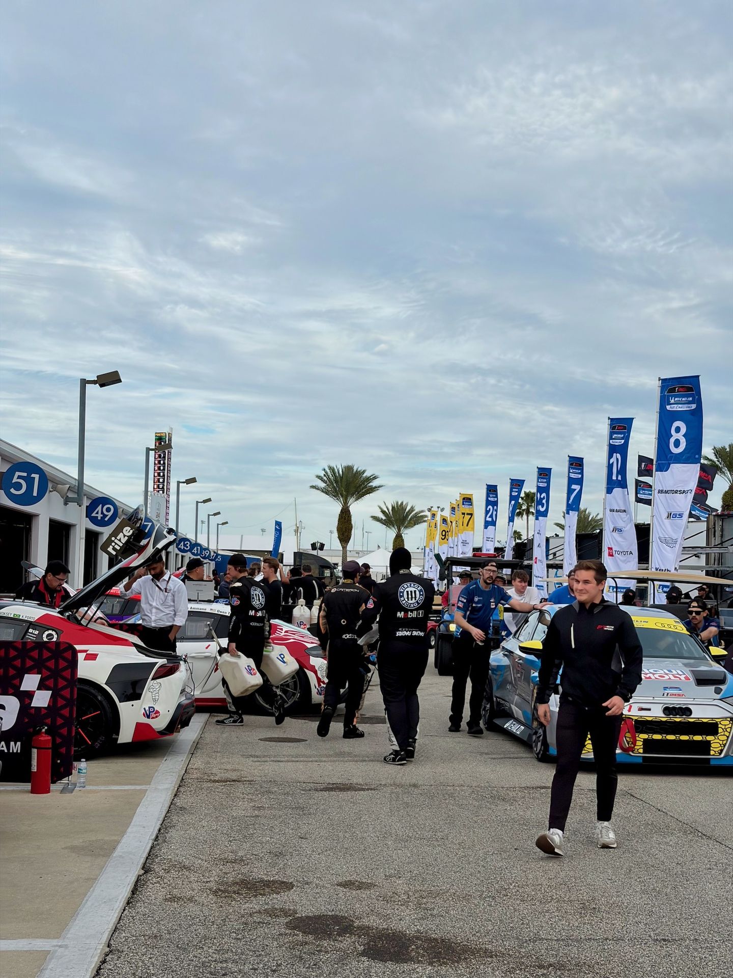 After a couple of days to enjoy walks on the beach, the action continues for CSM here at Daytona with slightly warmer weather and the skies that are half and half. The paddock bustles more as the day goes on and we get closer to activity on track at last. The VP Challenge rigs left last week, making space for the MX5 Cup joining the IMSA circus this week. The flow of fans through the paddock is increasing as well.