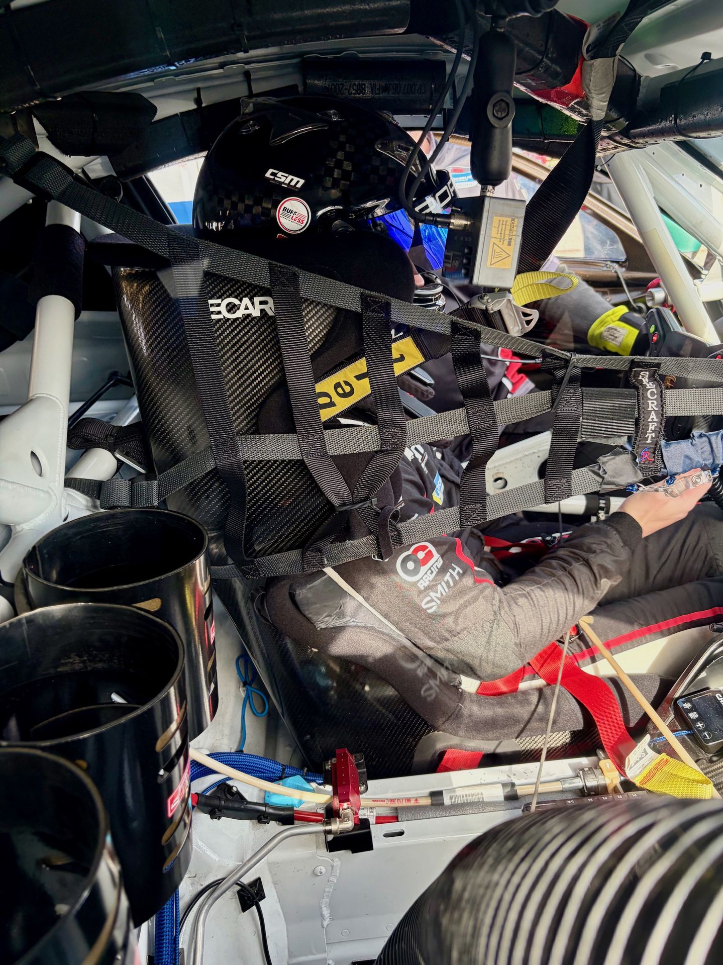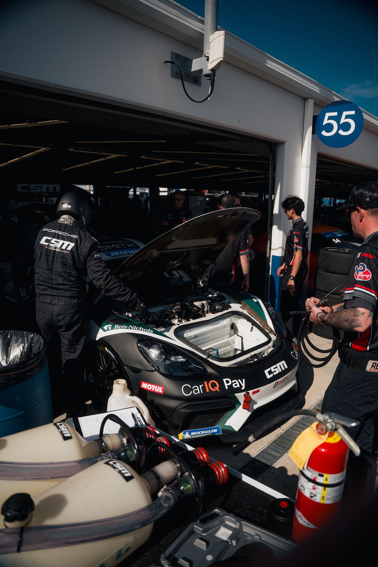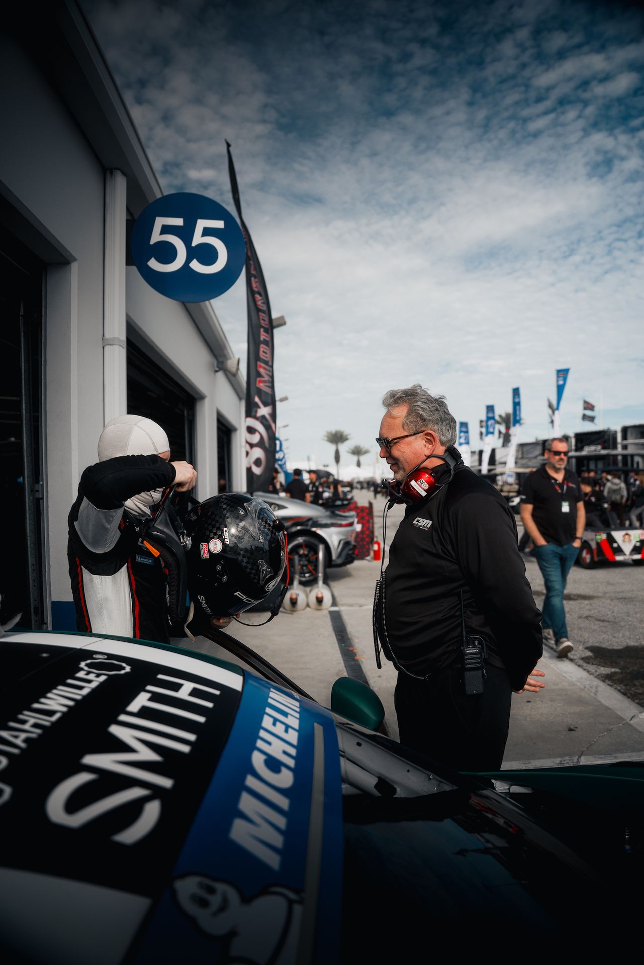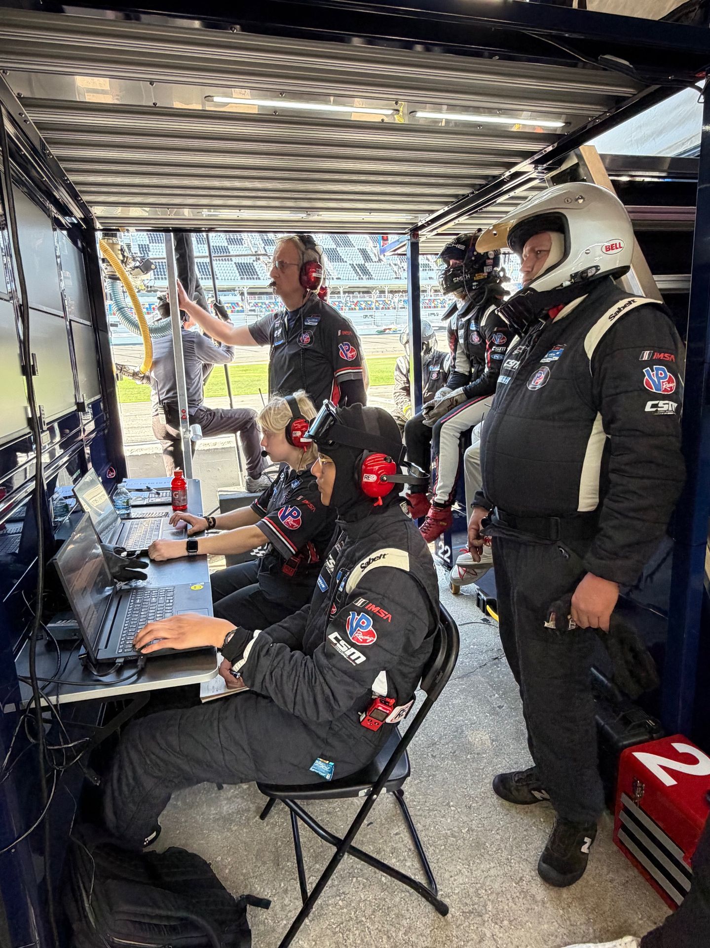 Ahead of the single track session today, Morgan, Gordon, and Madeline attended the driver and team briefings held by IMSA, had the requisite headshots in full race suit (minus helmet), and several CSM debriefs and planning discussions. It may be counterintuitive, but being a race car driver is probably more planning, evaluating, and talking than it is actually doing the driving. That's what it takes to move up the standings.