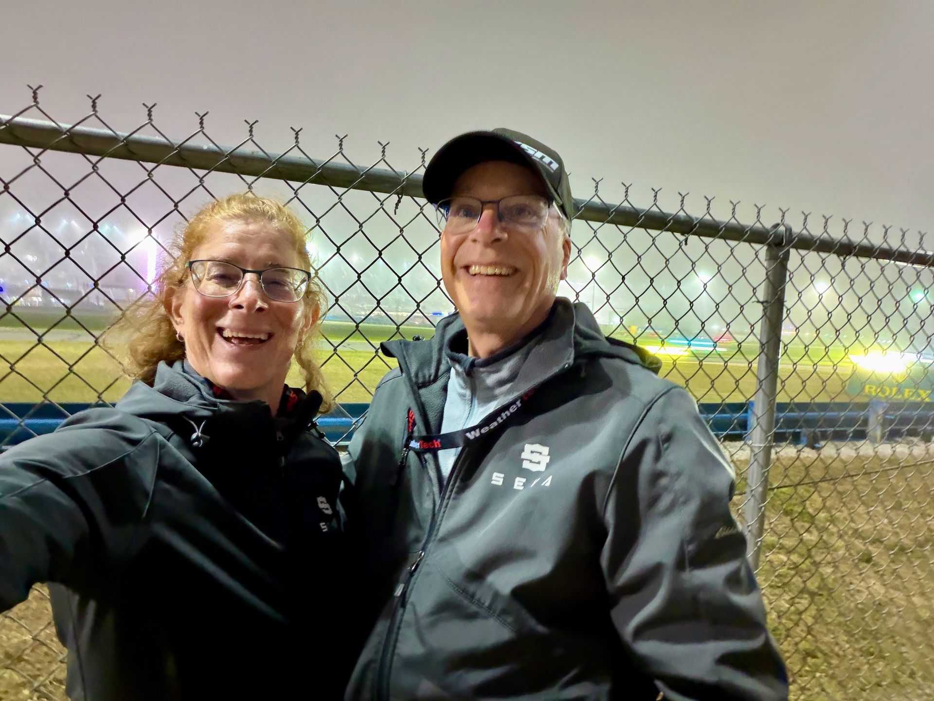 Bonus time: We stayed around to take in the big show for the weekend, the Rolex 24 Hours of Daytona. This is a monster of a race starting at 1:40 on Saturday afternoon and running non-stop through the night to 1:40 on Sunday afternoon. The Turn 1 grandstands are packed and the infield space is teeming with spectators and their campsites. Food and merch vendors, along with manufacturer pavilions cram the midway, complete with a gigantic ferris wheel.
