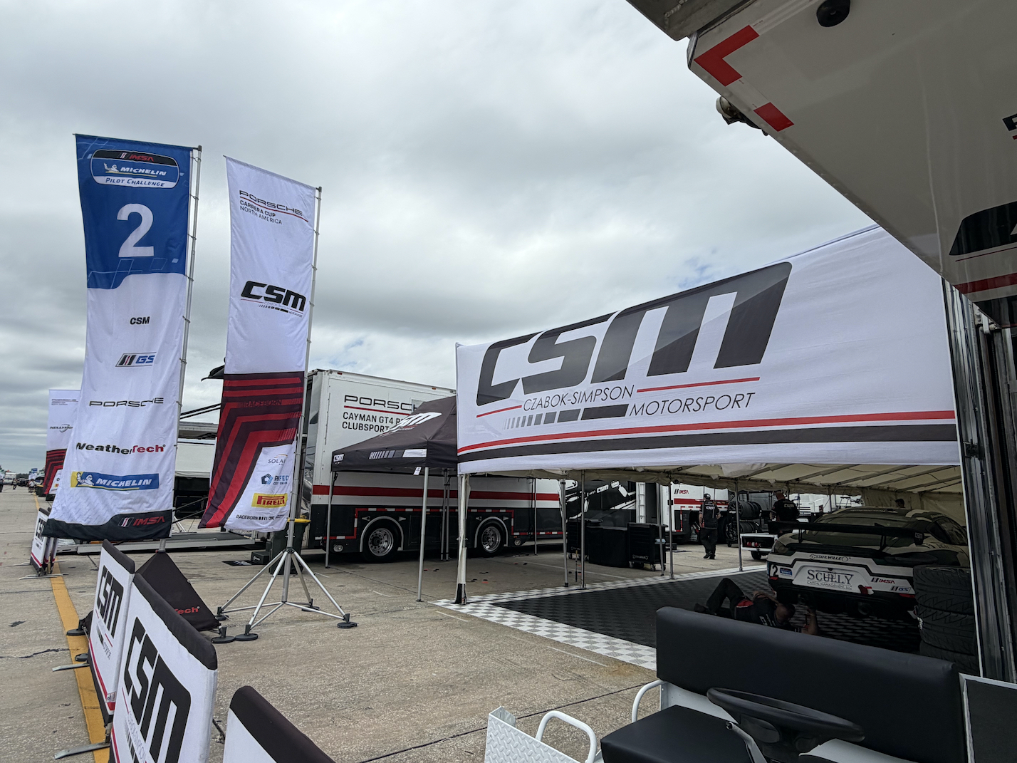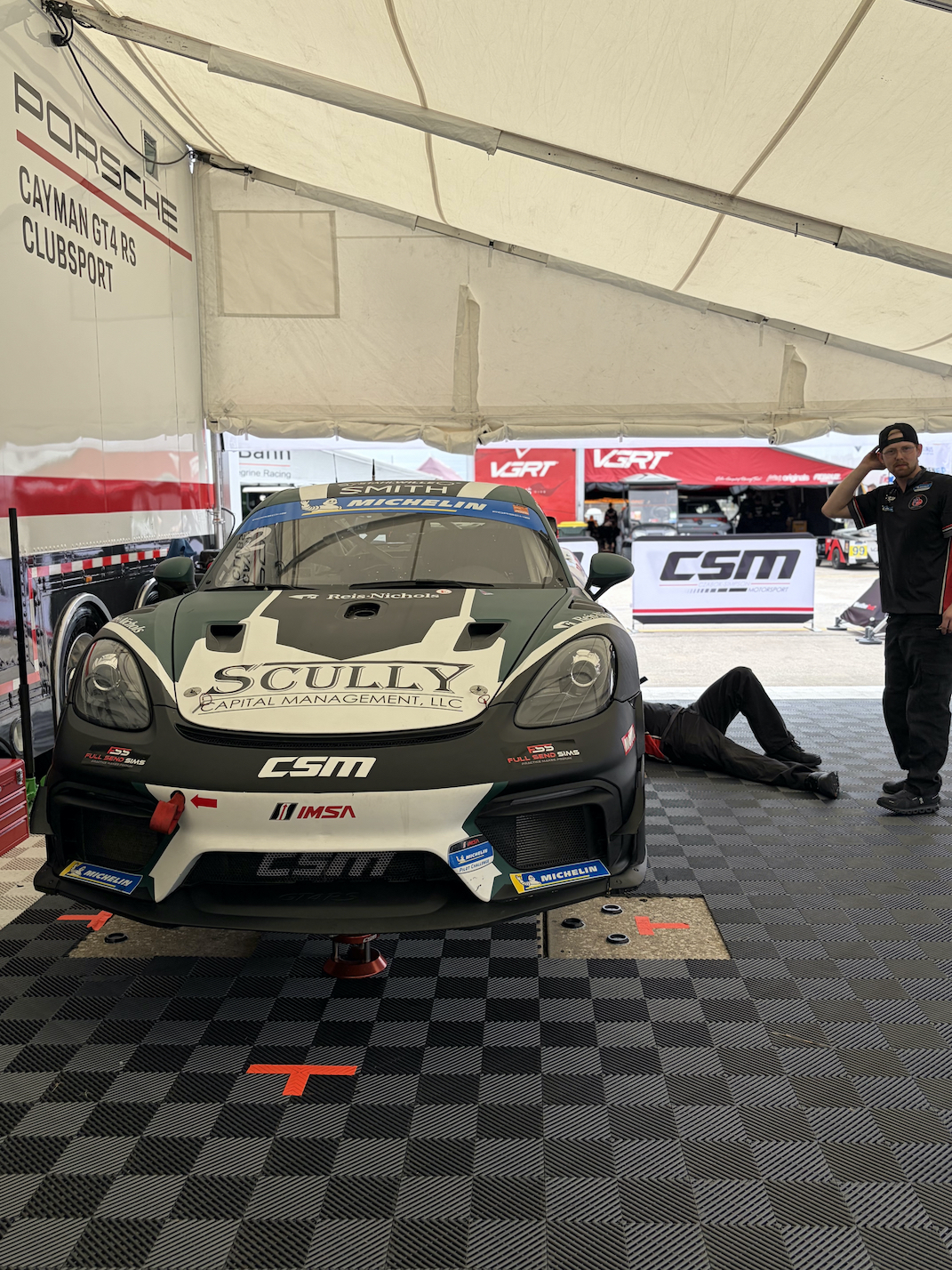 Morgan and Gordon have the #2 green/black/white CSM Porsche in fine shape and ready to go! They have only one session today, Wednesday - 11:25-12:25. Thursday, 8:00-9:00, we have Practice 2 and then qualifying for our class (GS) 2:30-2:45. Friday is race day with the green flag at 2:00 to start a 2-hour race.