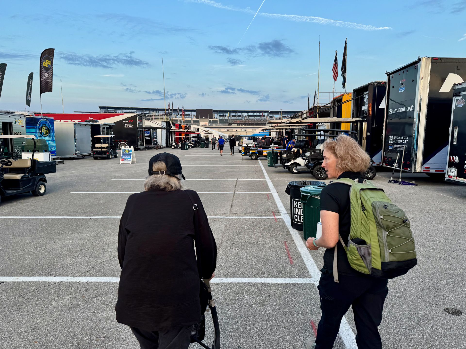 The Paddock: We are all going to put a lot of miles on the sneakers this weekend. To get to the parking situated deep in the center of the infield, we wind through infield roads, passing the museum and the infield road course on the right hand side and a seemingly infinite number of trucks and trailers perfectly aligned on the left. Past the fan zone (still deserted this early) and car corrals awaiting their patrons. We can't even see the lakes, golf course, or dirt track that are also somewhere in here. One could almost forget there's a Speedway surrounding all of it - at least until the engines fire up anyway.